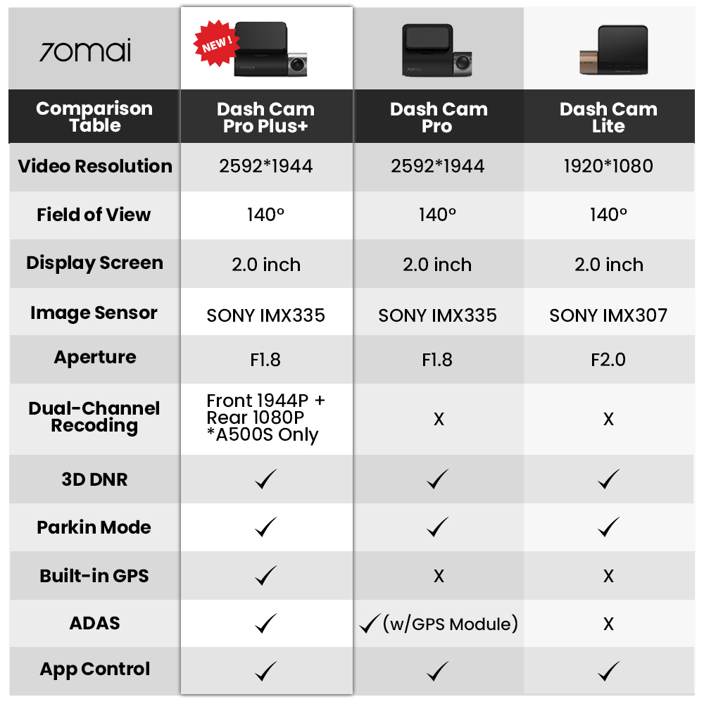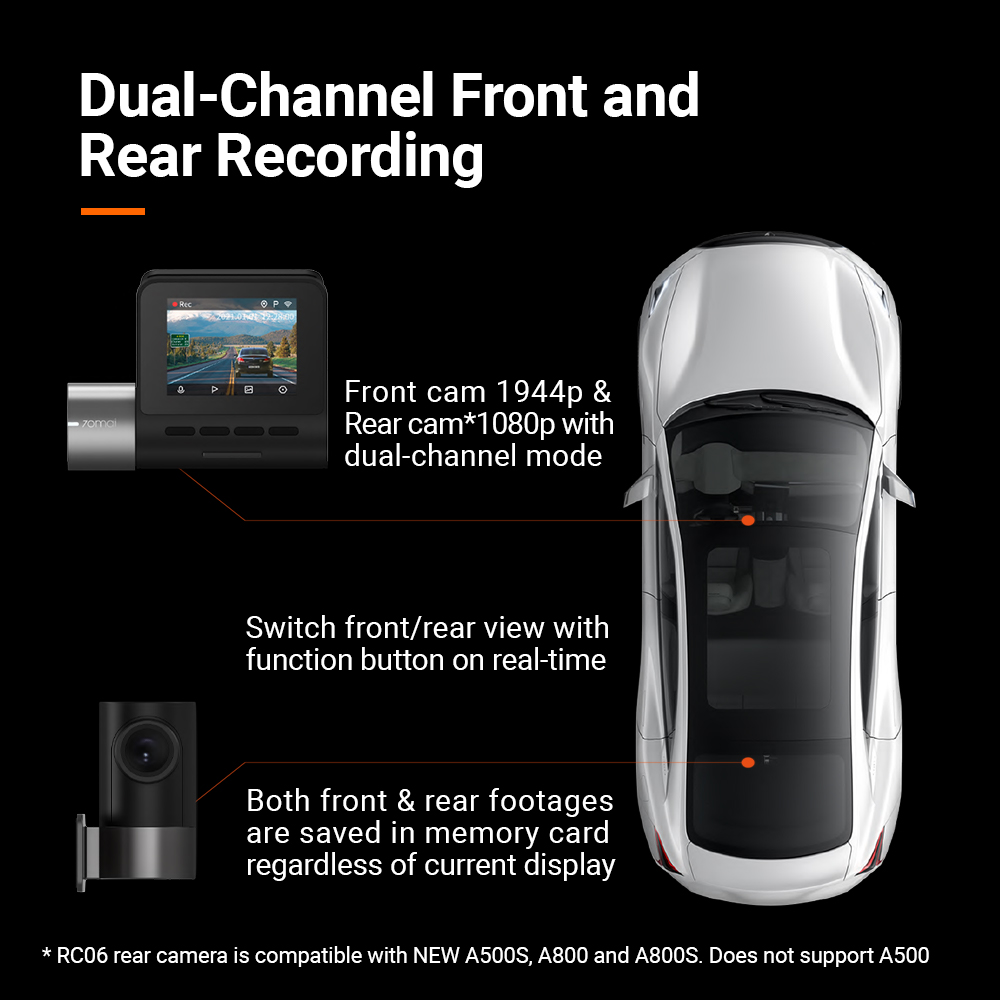 - 【NEW A500S】Newly improved version of A500, now compatible with 70mai RC06 1080P Rear Camera