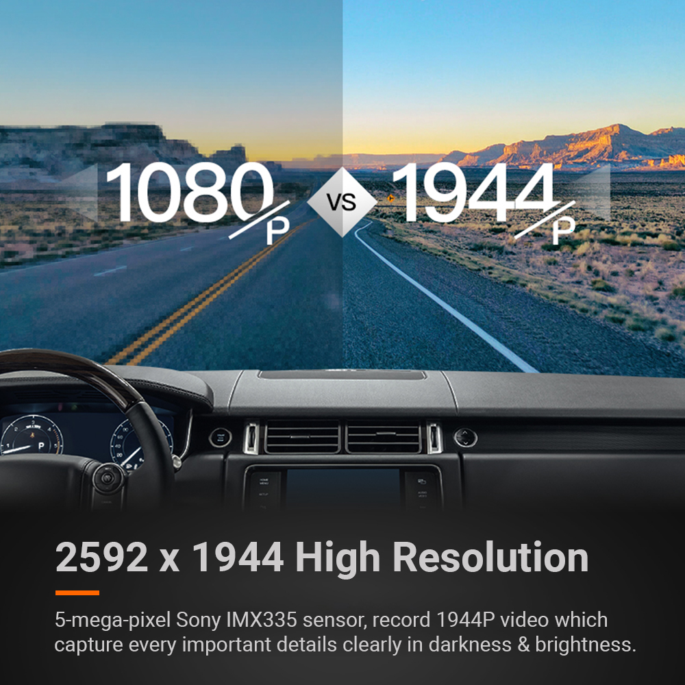 - 【1944P Super High Resolution with 140°FOV 】With 5-mega-pixel Sony IMX335 sensor, record 1944P video which capture every important details clearly in darkness & Brightness.