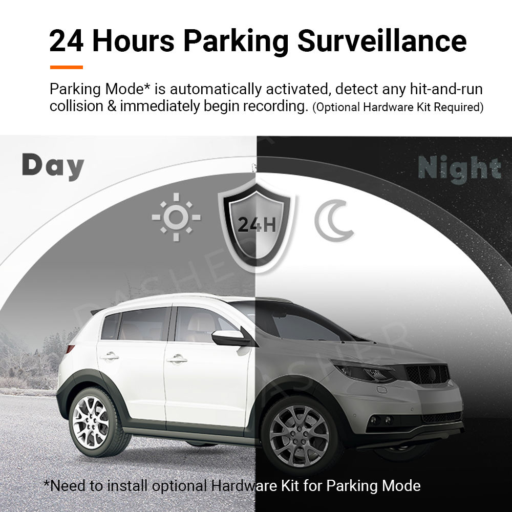- 【In-car Guardian for 24/7 Protection】 Parking Mode* is automatically activated, detect any hit-and-run collision & immediately begin recording.