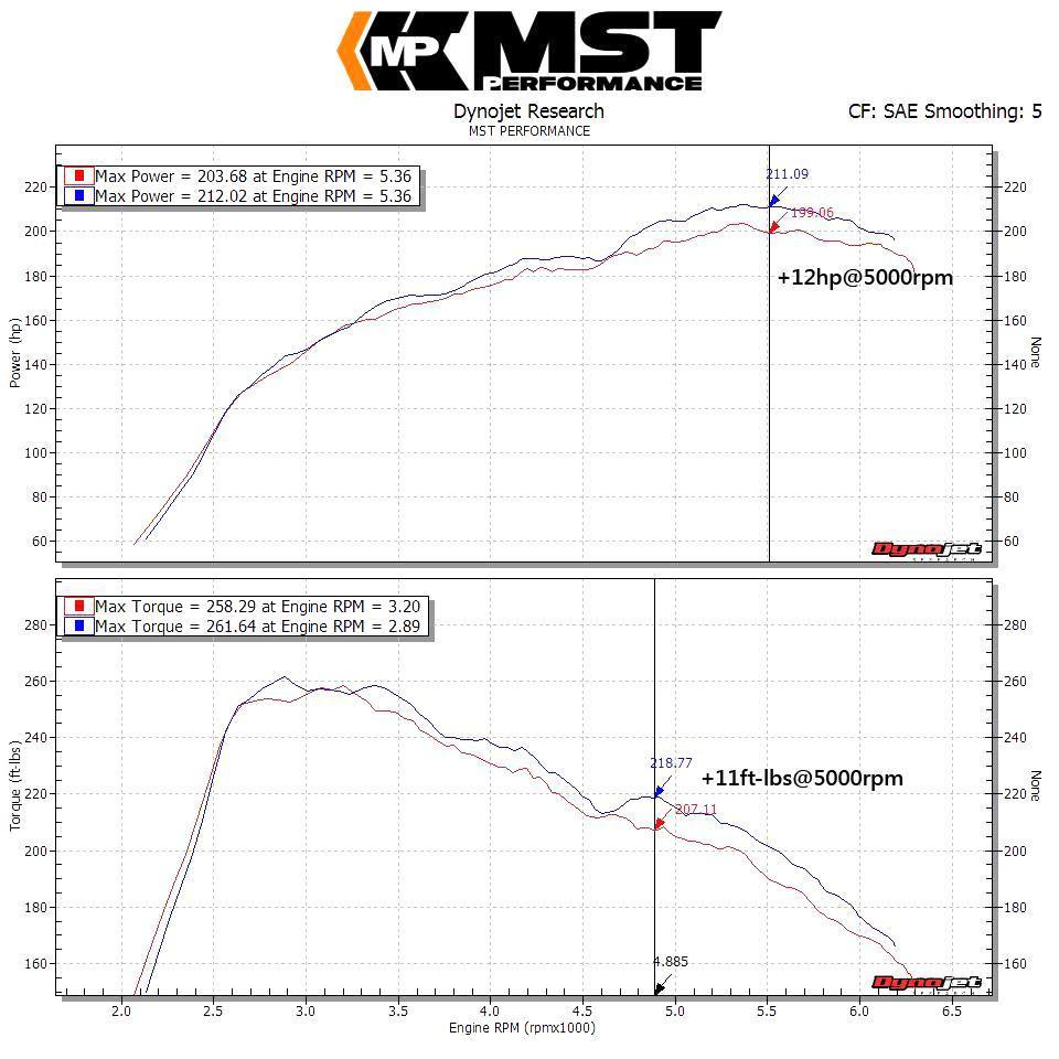 – Dyno result: +12 hp@5500rpm and +11ft-lbs@4800rpm