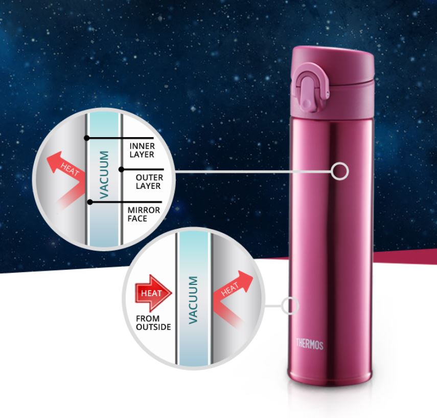 • Thermos® double-wall vacuum insulation for maximum temperature retention.