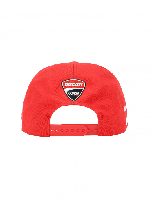 - The lettering Ducati Corse is featured on both sides, and the Team MotoGP logo is embroidered on the visor and back of this official cap.