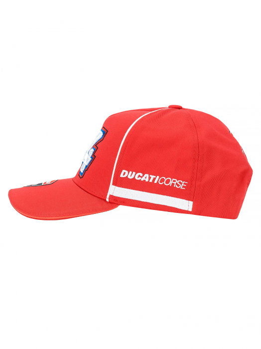 - Andrea Dovizioso cap from the official Ducati Dual 2018 collection. Red baseball cap with white details.