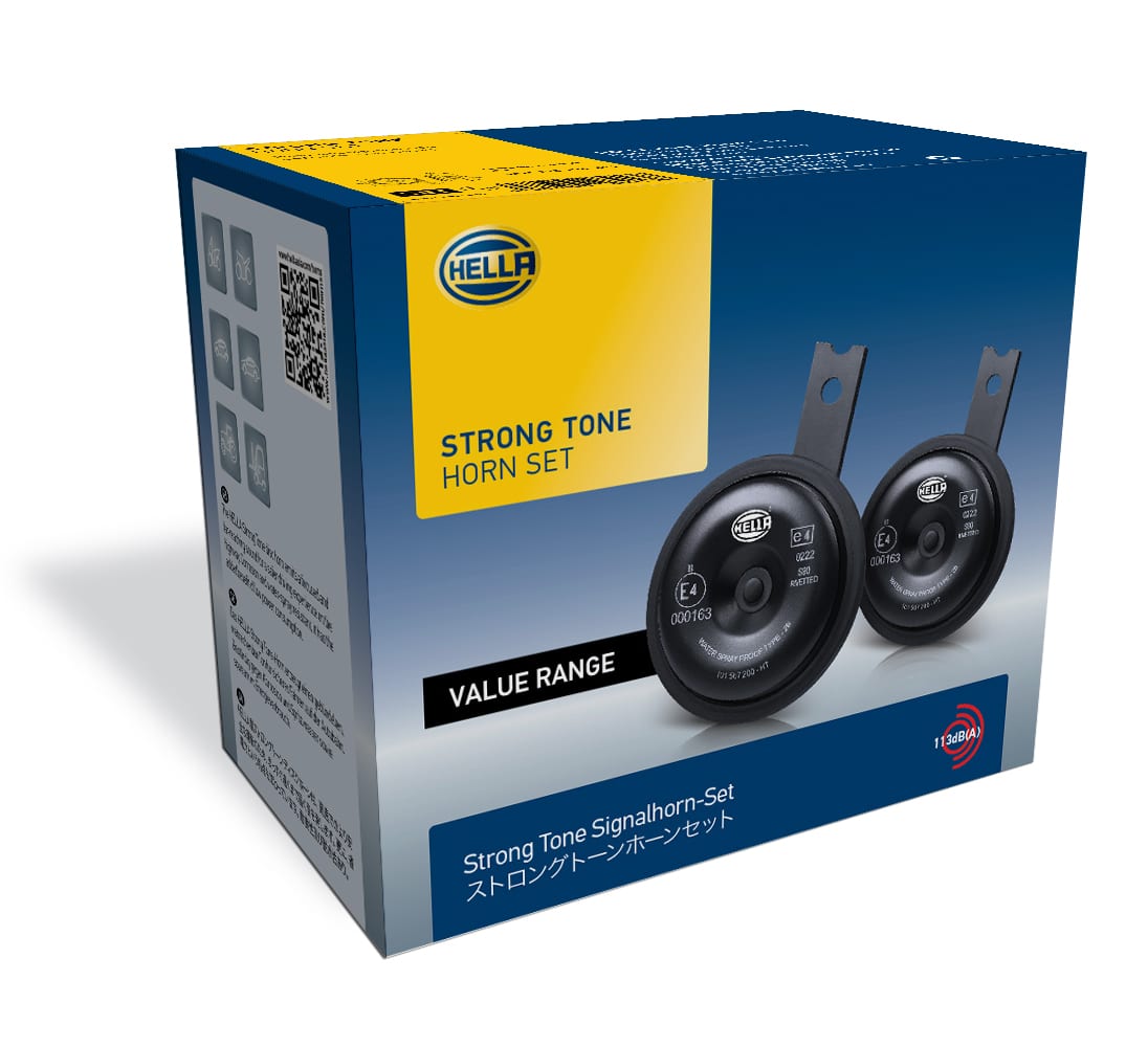 The HELLA Strong Tone disc horn emits a focused and far-reaching sound for a safer driving experience.