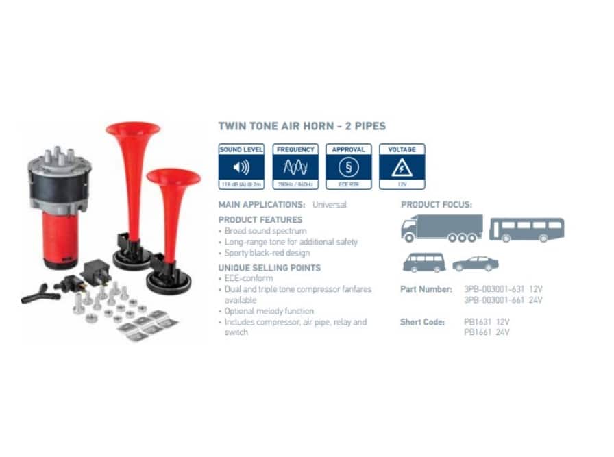 HELLA 24V Twin Tone Air Horn Set – 3PB 003 001 641