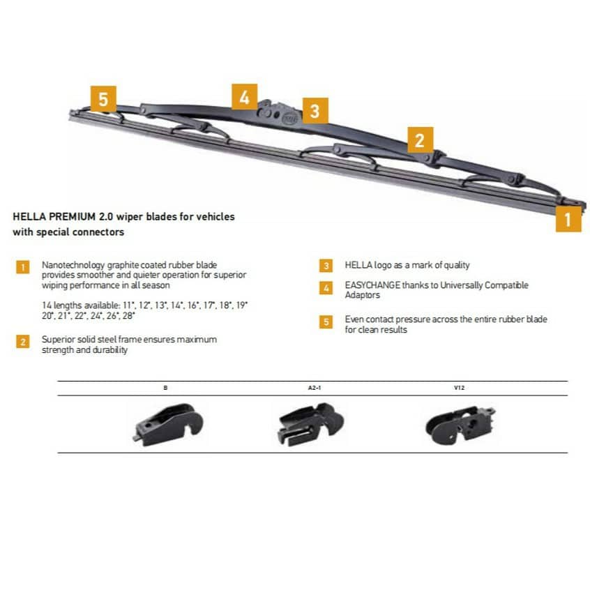 •As a leading partner of top vehicle manufacturers, HELLA is committed to innovative quality products to make the roads safer for drivers. HELLA offers a wide range of quality wiper blades with high market coverage for Asian vehicles. Experience the clear difference with HELLA wiper blades for better vision and a safer drive.