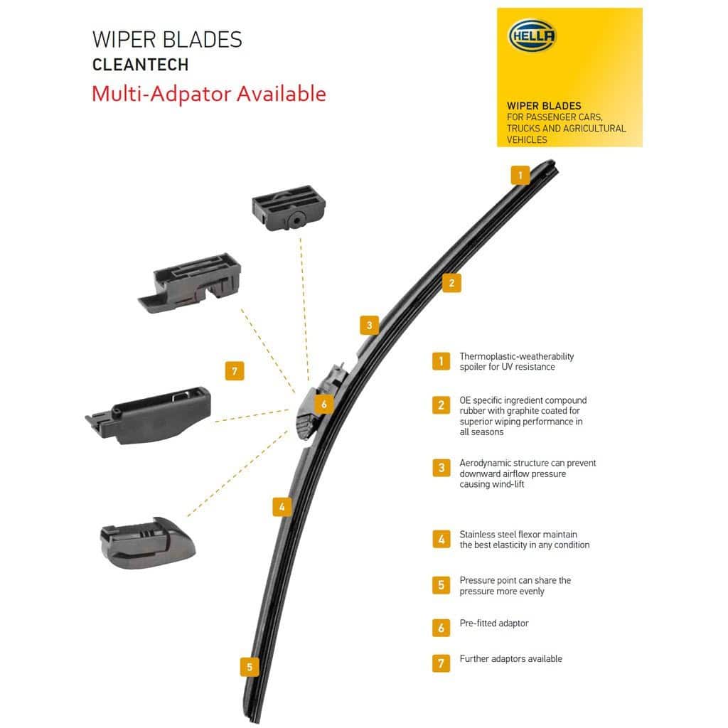 HELLA CLEANTECH WIPER BLADES Multi-Adaptor (7 types of adaptor)