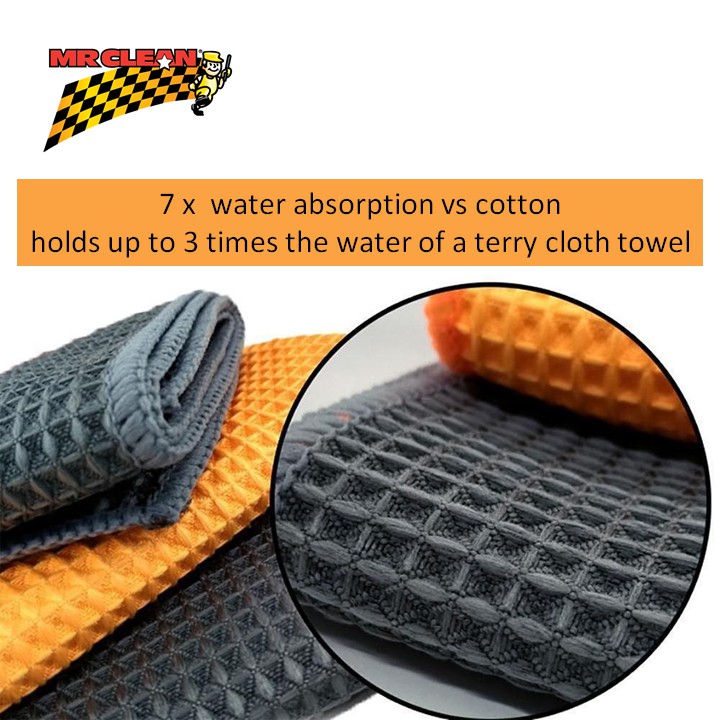 Mr Clean MICROFIBRE CAR WASH CLOTH is a waffle-weave towel that holds up to 3 times the water of a terry cloth towel!