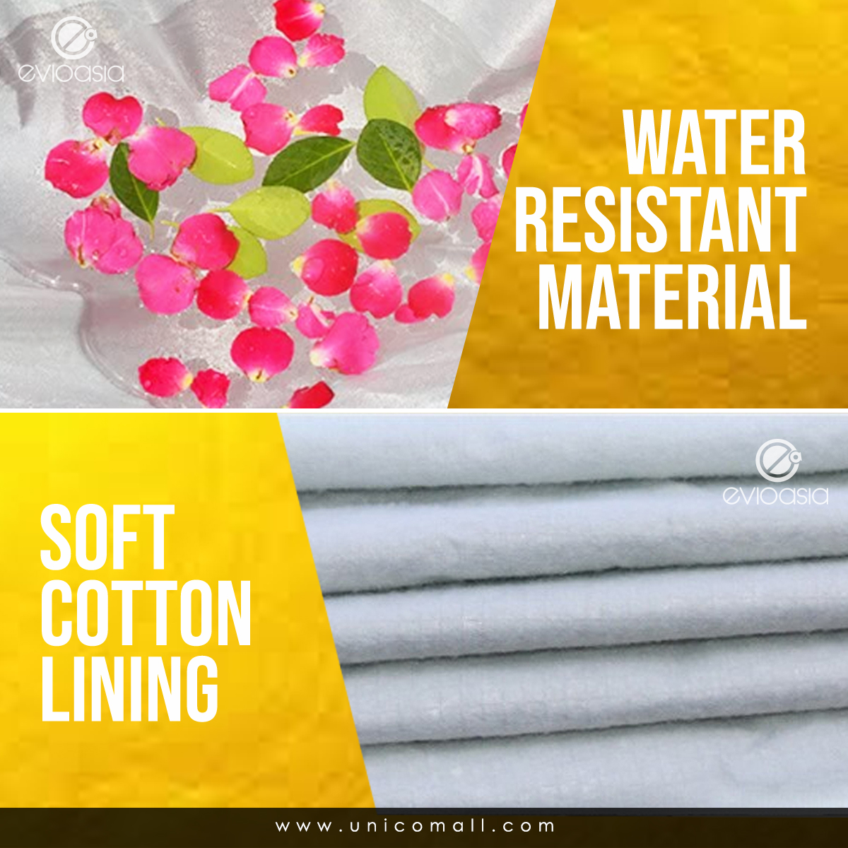 – Made on non-abrasive and mildew resistant, water repellent and lightweight.