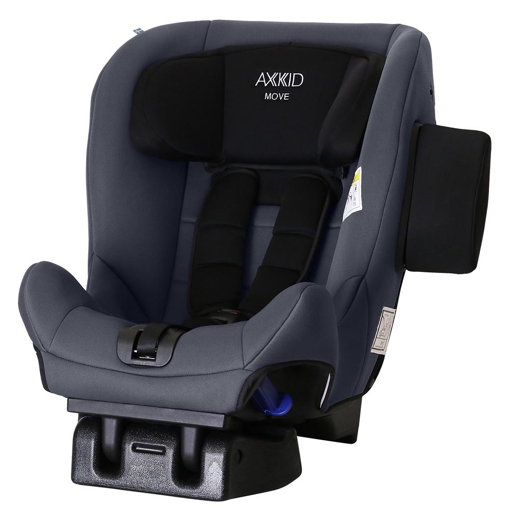 • The rear-facing car seat Axkid Move is for those looking for an affordable and safe solution where you can let your child travel rear-facing for a long time, and that is easily installed with the vehicle’s three-point belt. Axkid Move takes up very little space in the car, so you can install it in both small and large cars.Axkid Move comes with the innovative side impact protection – ASIP (Axkid Side Impact Protection), developed together with a recognized crash institute in Germany, providing the best possible protection for the child in the event of a side impact collision. ASIP should be used on the side of the car seat that is facing the car’s door. When using the car seat in the middle, ASIP is not required.The support leg on Axkid Move is extended with just one button on the side of the support leg, which is easy to access.The slope can be adjusted in two different positions using the adjustable support leg in the front of the car seat, and the headrest has three fixed positions, all for the child to be safe and comfortable. If more slope is needed, our angle adjusting wedge is a good addition.Axkid Move is approved 9-25 kg and has received very good reviews from several independent test institutes. The car seat is Plus approved up to 25 kg, awarded with “Good Choice 2017” award by Folksam and is Rollover approved by VCA.