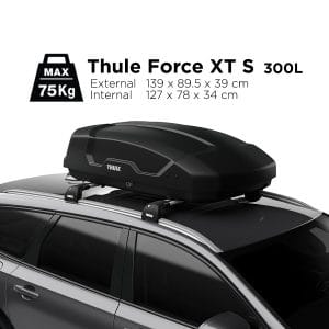 Stylish and spacious roof-mounted cargo box, optimized for ease of use.