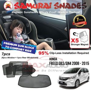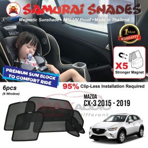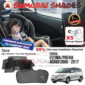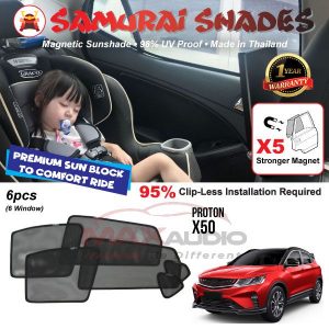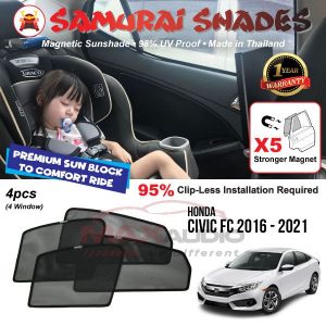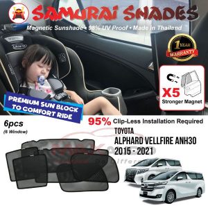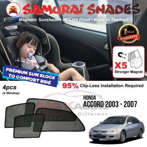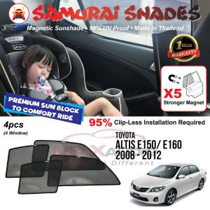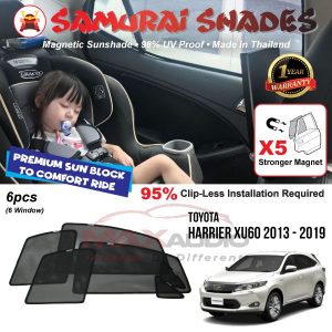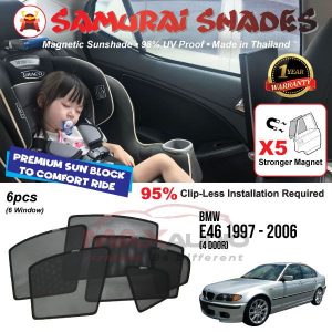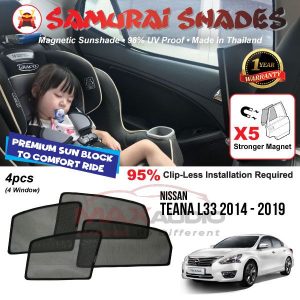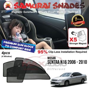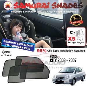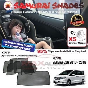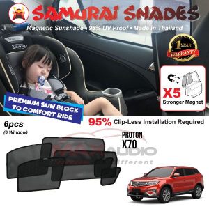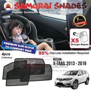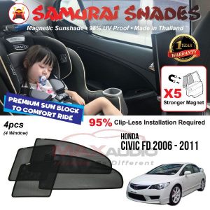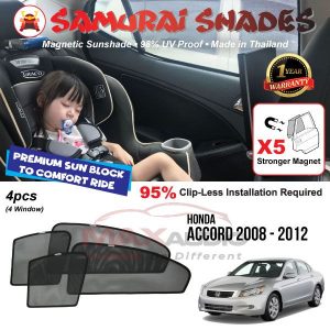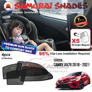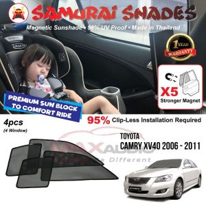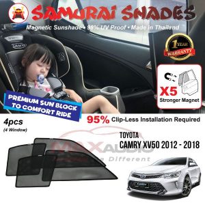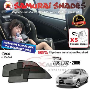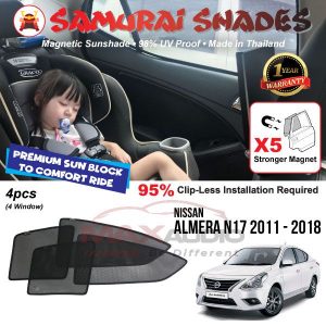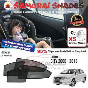 Introducing SAMURAI SHADE made in Thailand 100% magnetic sun shades special ready made for your car with fully plug and play that fits your car window. NO MORE glaring sun shine, NO MORE hot interior in your car.