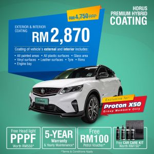 Horus Premium Hybrid Coating for Proton X50 | Offer Price: RM2,870 | Booking Fee: RM520